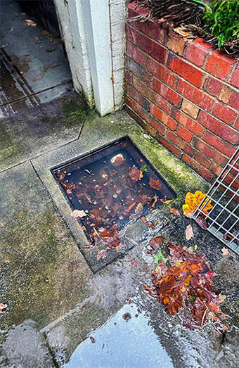 Urgent unblocking of stormwater pits and grates clogged with leaves, sediment or debris during storms to prevent backflow and flooding.
